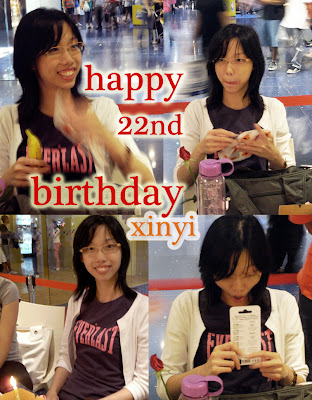 that make life more exciting, ![]() hanging out in our ideation year one class one fine day after school, to kill some time, and accompany zhiying for a while. I wish we can do this everyday like last time. Taken with Amaris' fuji instantcam, lucky girl got free film from her friend. Friday is pretend-there-is-no-work-day, walked around and looked at stickers and whatnots with nuo, zhiying and phy then the happening people went off for their programmes while my superglue lovely stuck around with me for a while. * Birthdays in the caregroup, ![]() (Keep forgetting to post this) Eevoon, and her favourite luncheon meat, which many people commented look weird as a photo, so I uploaded a small one. Wall-E after that caregroup was really enjoyable. :D Xinyi turned twenty2 on Saturday ![]() and she got 22 items for her present, including a banana. went bowling, went to americano with interesting people, and went to SMU. (eee. so many people mugging on Saturday night in school.) ![]() haha, just had to take photos. been a while since I had a fruitful Saturday. here's xinyi trying to remember a positive teacher in her life, puay hiding behind her advert thick theory book, yao doing a collage on his creative inspiration corrine may (come to think of it, what has this got to do with what he studies...), yiyou and her happy doodles, qianjin still working hard after a longgg day and jumping on stage, the princess looking scary and a little stressed. may there be many more happy fruitful Saturdays to come, hahaha. 0 Comments: |