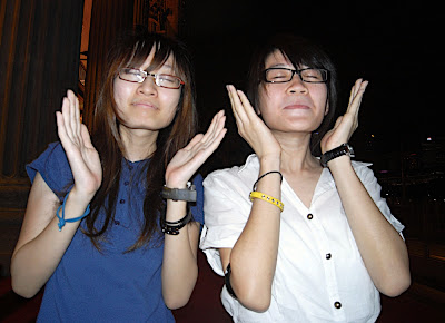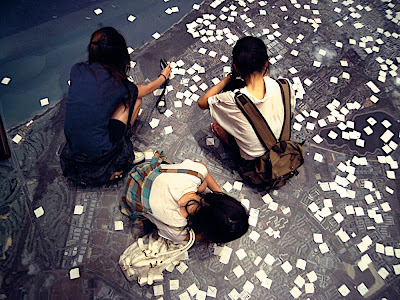 we went to the Biennale 2008, WONDER! (if you intend to go, you may want to skip this post if you want to be more awed. if you don't intend to pay nor go, here's what's there) (at this point I feel very tempted to just paste redrubydope's entry... but no, I shall blog my take on it, while kopping her nicely edited photos) We went to South Bridge development first, it was built in the 1930s and consists of three army blocks. It was the first location for NS enlistment decades ago. I really like how they make use these heritage locations for the biennale ![]() ![]() ![]() ![]() ![]() ![]() Please click and zoom to read this, because my explanation of it will belittle the true meaning behind it. ![]() This is called Address, and it kind of reminds me of what Wall-E does, Cubify junk people do not want anymore. The following are all charcoal drawings. Really crazy, 'cause it's over the whole room, wonder how long the artist took. ![]() ![]() ![]() ![]() ![]() the biennale features many videos that's kinda experimental, and the kind that we don't really... understand :X ![]() ![]() ![]() ![]() amazing how the artist creates with just a colour. ![]() ![]() this piece is about about dancers' flexibility. it makes me feel like it's a tad sadistic though. the colours are really really nice though. ![]() ![]() wacky hair salon that makes you think you are looking at the reflection of it through the mirror, but the mirrors are all fake, you are actually looking at the other side of the room, arranged to look like a mirror image. ![]() they're so serious about it, they even made a inverted clock. ![]() This crescent in the tree is accompanied by a series of wonderful photography shots, which I can't show you, 'cause the glass they framed the shots up in are super reflective. Basically it shows how a man lives with a crescent, and the photography and scenes took my breath away :D ![]() this is us in this cool room that inflates and squashes you. at first when we went in we were like UHHH, okay, where's the artwork? then the walls started to inflate and the room became smaller. simple idea, but so cool. We then moved on to the huge wall... and since it's blank besides the words... ![]() ![]() I will always be amused at how we take group shots. ![]() "aye zhiying, use yr bag lah, yr bag more flat!" "to the left a bit!" "faster run!" LOL. I love that shot of YT. HEHEHEHE. ![]() "hotlikeshithotlikeshithotlikeshit" ![]() cute photo of phy, hehe. ![]() ![]() swing made out of light tubes went on into a series of rooms with the floor covered with millions? of black paper, and with pretty patterns. ![]() ![]() ![]() ![]() ![]() ![]() by now, we are dead tired. and in need of drinks. so we found ourselves in Mos. :D ![]() ice milk tea for the win! ![]() "bu yao pai wo! buyaopaiwo!" ![]() ![]() do you spot someone familiar in the background? * and by now, the blogger is actually very tired, try filtering and editing photos from almost 500 shots >_< but there's still part two at City Hall, the old supreme court ![]() crazy artist actually grew this gourds from little seeds, cared for them on his own and then sculpted them into the heads. ![]() this, is actually made of up this, which identity we do not know... this is highly interactive. visitors are all given a piece of sticker each, and told to write something and paste on the floor, which is the view of Singapore from sky :D ![]() ![]() our little squares worth ![]() I found my alma mater! a Pri sch kid went to biennale 0_0 and woah Andersonian! cool book suspended in water, don't know how they did it, but it floats around and open and close.. amazing amount of patience :D ![]() this scares the hell out of me. they had flames burning projected on the walls, crazy music, and tones of black figures around. it's night at the supreme court which has sentenced i-wonder-how-many people to death before. I skipped some artworks, 'cause I am getting lazy, and the maggots piece freaked me out, though the rest think that it's cute, so I refuse to post anything on it. They had many videos which we didn't have enough time (nor patience) to sit through... ![]() tired and shot by a tired and cranky camera ![]() no link, but I just like this pict, lol! ![]() the end. Thank you for reading till here you have no idea how long it takes to blog this, lol. Support the Singapore Arts scene! :D I also conclude that design and art are really very different. And I am happy to be a Design(-er to be) student, who enjoys Art for what it is :D 0 Comments: |
